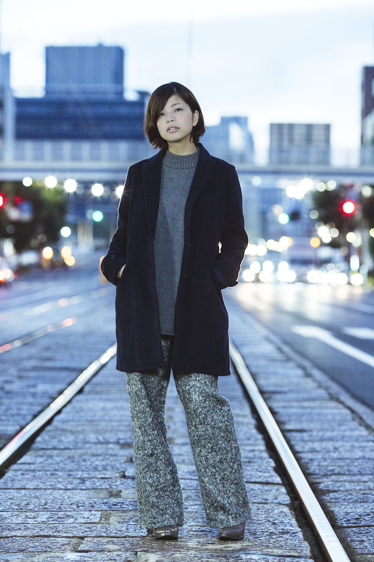 2016.09.24 Sat 危ないので、絶対に真似をしないでください。 線路や道路での撮影は、警察に届けを出しましょう。 駅内での撮影は電車会社に届けを出しましょう。 本日レディースのチェスターコートを早朝に撮影しました。